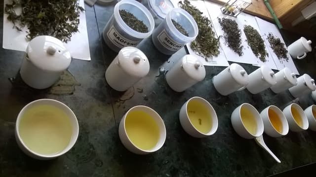 Les thés s’appellent : Émeraude, Aiguilles de Jade, Bleu des cimes, Sentier au Népal, Nuages, 4 Seasons, Moustaches des Seigneurs, Vet-Ilam Mao Feng, ... Plus de détails : goûts, arômes sur le listing.